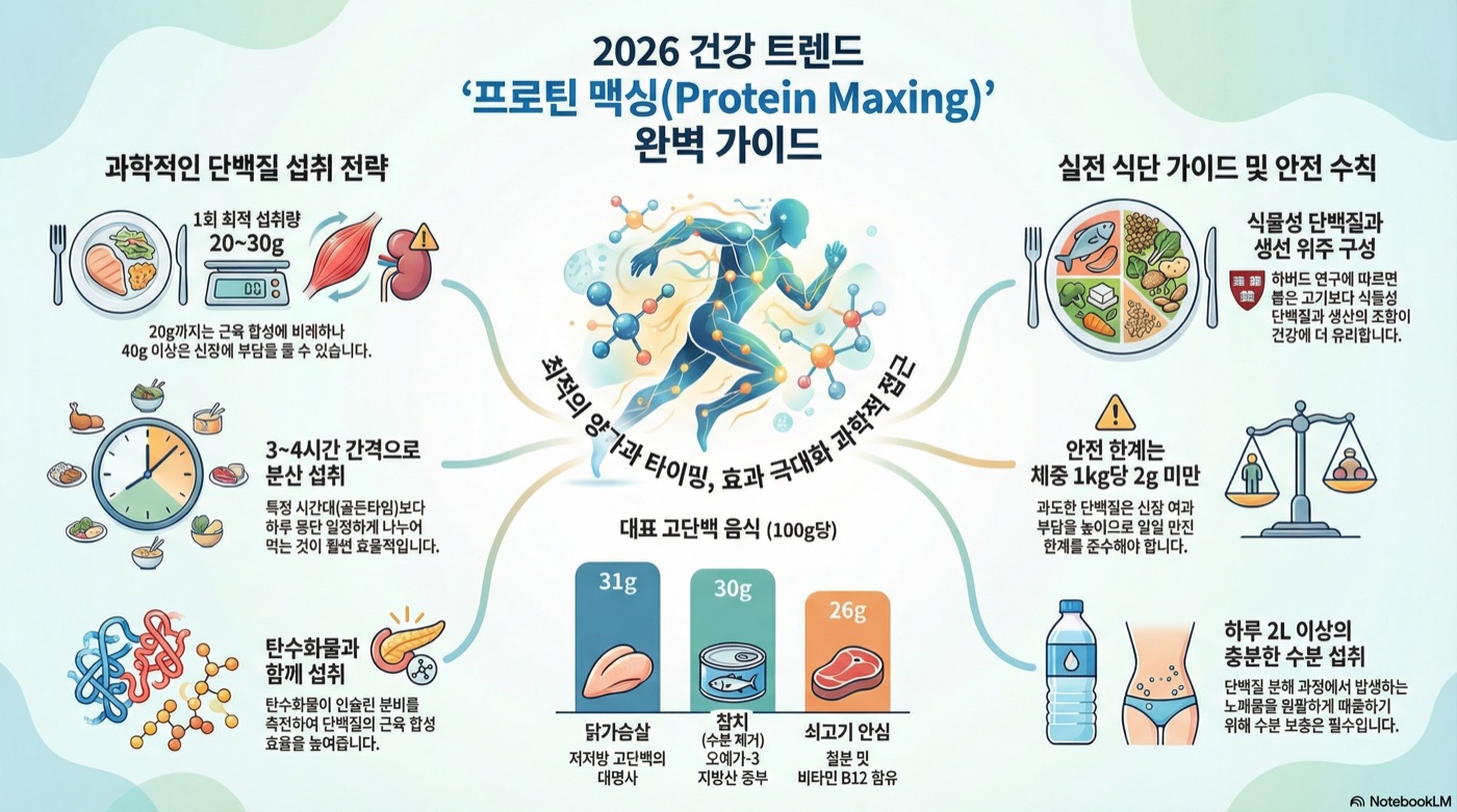 2026년 가장 뜨거운 건강 트렌드, **프로틴 맥싱(Protein Maxing)**을 아시나요? 단순히 단백질을 많이 먹는 것이 아니라, 최적의 섭취량과 타이밍으로 효과를 극대화하는 과학적 접근법입니다.