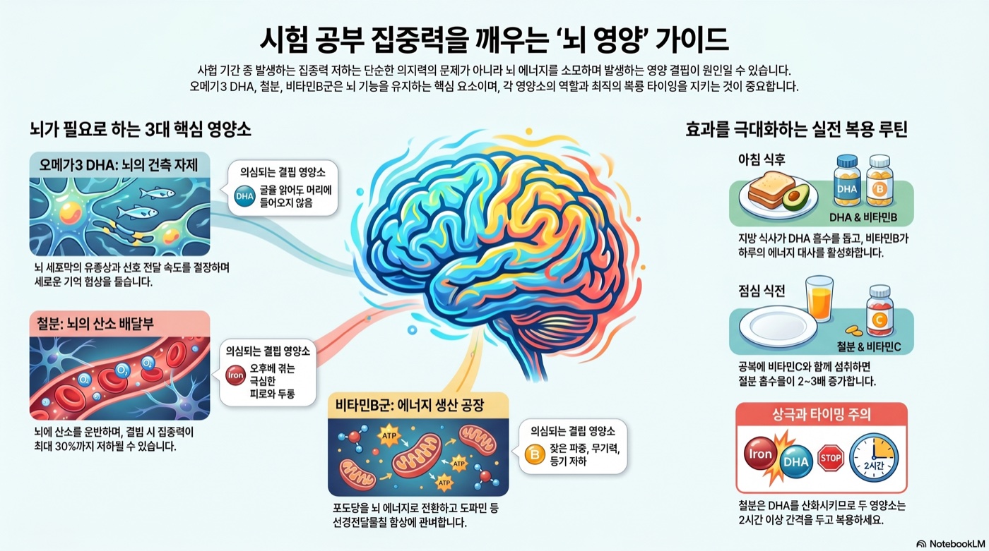 #시험 공부 집중력 영양제#수험생 영양소#오메가3 DHA 공부#집중력 비타민B#철분 결핍 집중력#수험생 영양제 추천